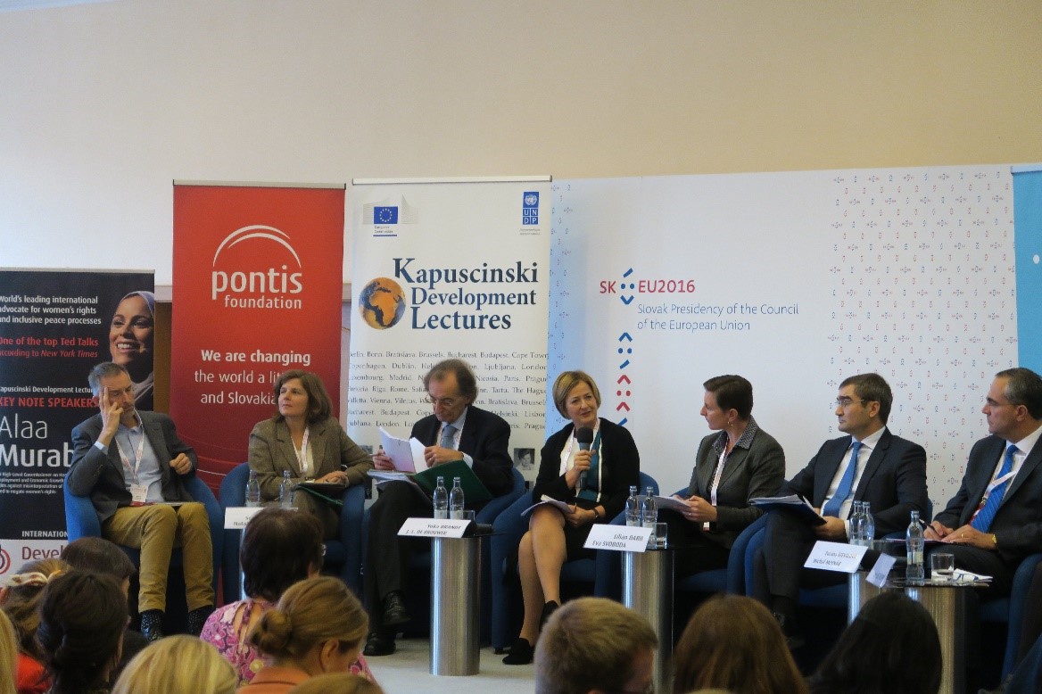 5. ročník mezinárodní konference „Rozvoj a demokracie“ s podtitulem „Udržitelný svět, kde nikdo nezůstane stranou“ se konal dne 27. října na Ministerstvu zahraničních věcí Slovenské republiky v Bratislavě. U jednoho stolu se opět sešli zástupci akademické sféry, neziskového sektoru a politici, aby diskutovali vztah mezi humanitární pomocí a rozvojovou spoluprací stejně jako efektivní přístupy k udržitelnému rozvoji. Účastníci konference se shodli, že spolupráce napříč sektory je základním kamenem úspěchu pro zajištění udržitelné budoucnosti.