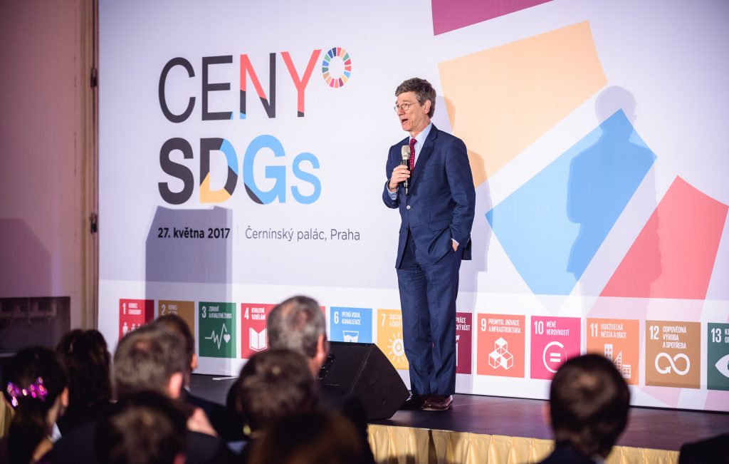 Na slavnostním večeru v Černínském paláci na Ministerstvu zahraničních věcí exkluzivně vystoupil a jednu z cen předal také profesor Jeffrey Sachs, jeden z nejznámějších ekonomů světa, expert na udržitelný rozvoj a odborný poradce OSN. „České Ceny SDGs jsou skvělou inovací, která nejenže přitáhne pozornost k udržitelnému rozvoji, ale slouží také jako inspirace pro byznys, jednotlivce i veřejnou správu, aby zvýšili své aktivity k dosažení Cílů udržitelného rozvoje. Ceny SDGs jsou iniciativou, která by se rozhodně měla rozšířit do dalších zemí,” dodává k prvnímu ročníku Jeffrey Sachs. Ten v sobotu odpoledne zároveň vystoupil na téma Cíle udržitelného rozvoje: Výzva pro střední Evropu, na veřejné přednášce v posluchárně Právnické fakulty Univerzity Karlovy, které se zúčastnilo více než 500 posluchačů.